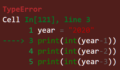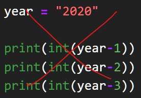 | 정답 : print(int(year)-1) 오답 : print(int(year-1)) |