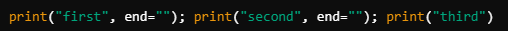 다음 코드를 수정하여 줄 바꿈이 없이 출력하세요. (힌트: end='') print 함수는 두 번 사용합니다.