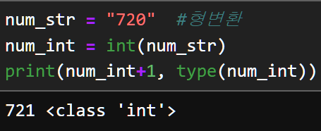 변환 후에는 " "안에 숫자도 정수형(int) 연산을 할 수 있다. |