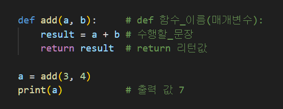 매개변수는 함수에 입력으로 전달된 값을 받는 변수,