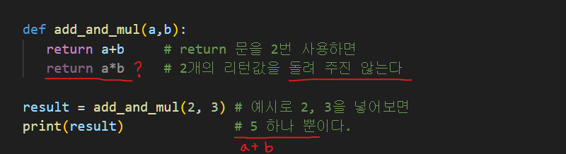 5. 함수의 리턴값은 언제나 하나이다