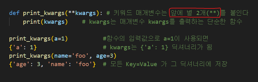 4. 키워드 매개변수, kwargs
