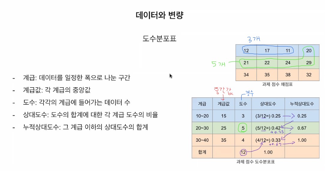 상대도수를 계산하는 법과 누적상대도수도 처음 알게되었다.